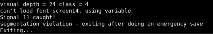"Fixing can't load screen14 issues, using variable Signal 11 caught! Segmentation violation - exiting after doing an emergency save"