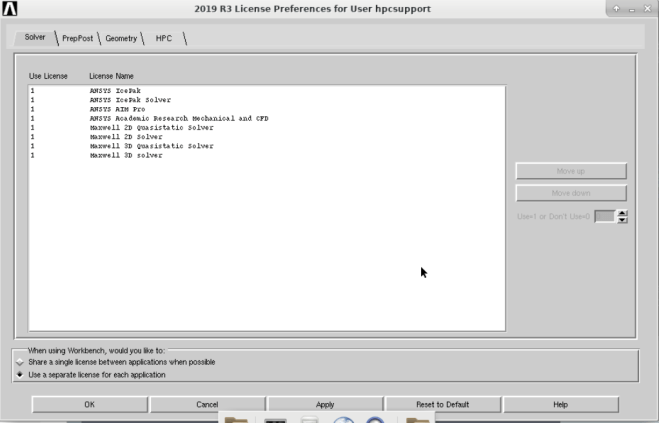 - Execute the command “/usr/local/ansys_inc/v195/commonfiles/tools/linx64/ansyslm_relutil -userprefs