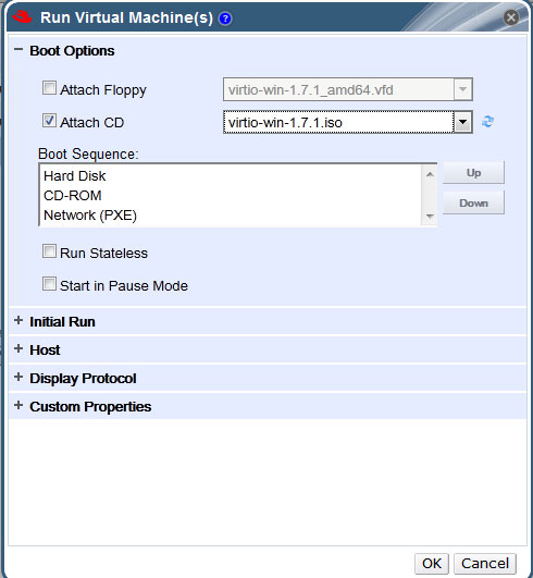 You may want to add these images to the ISO Library, you can attach the virtio-drivers-*.vfd image to the virtual floppy drier beofre manually installing Windows